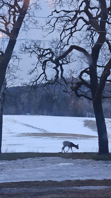 Blant annet har vi en fantastisk beverdam på eiendommen, vi vet hvor du finner kilovis med sopp om høsten, vi har skiløyper rett utenfor døren, vi kjenner guider som kan la deg oppleve skogen på nye måter, vi er et naturlig stopp på Flyktningeruta fra Oslo til svenskegrensa, og vi vet hvilke fugler og dyr som beveger seg i området bl.a: rådyr, elg, bever, oter, rev, rovfugler og ugler.